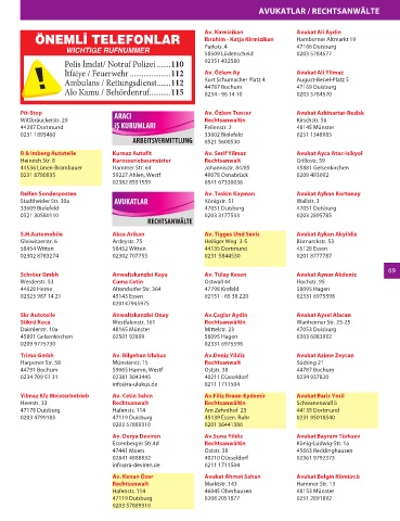 ! İtfaiye / Feuerwehr .....................112 Av. Özlem Ay Avukat Ali Yilmaz