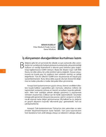 iş dünyamızın durağanlıktan kurtulması lazım