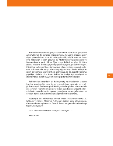 yapıldığı takdirde „Post Bizim Rehber“in özelliğini yitirmediğini ve 19