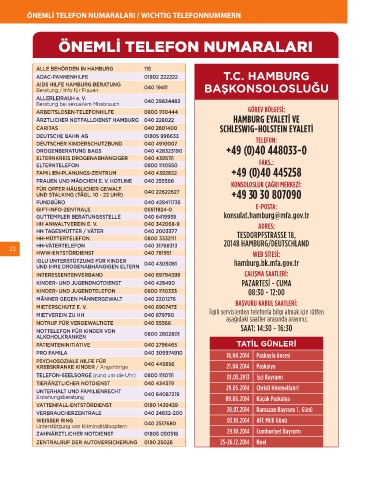 ÖneMlİ TeleFOn nUMaralarI / WIChTIG TeleFOnnUMMern