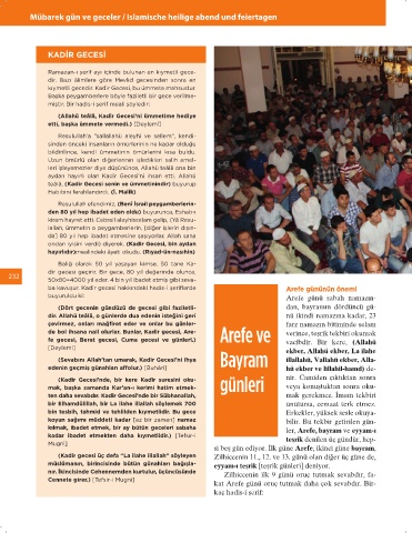 ba kavuşur. Kadir gecesi hakkındaki hadisi şeriflerde arefe gününün önemi (Arefe günü oruç tutana, Âdem zündekilerle iftihar ederek gökte- yüktür. Kurban bayramının 1.2.3.