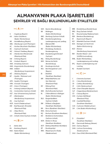 242 AÖ : Altötting (Bayern) BI : Bielefeld —: C :— Weinstraße (Rheinland-Pfalz) (Baden-Württemberg) Gummersbach