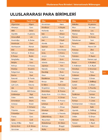 Ülke Para Birimi Ülke Para Birimi Ülke Para Birimi