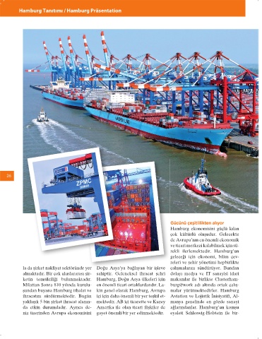 geleceği için ekonomi, bilim çev- için şirketler, üniversiteler, dernek- lojistik alanlarında Hamburg met- tı üretiminde Almanya dünya gene-