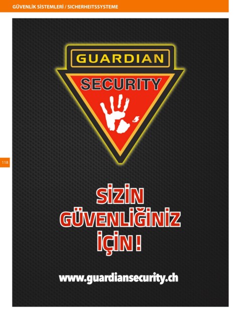 GÜVENLİK SİSTEMLERİ / SICHERHEITSSYSTEME 118 SİZİN GÜVENLİĞİNİZ İÇİN! www.guardiansecurity.ch Post Bizim Rehber Isvicre Seite 118 08.05.2014 11:59:29