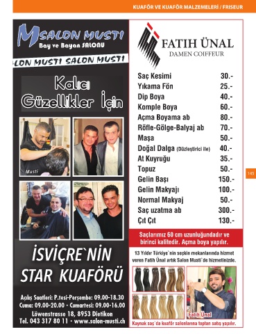 Tel. 043 317 80 11 • www.salon-musti.ch Kaynak saç`da kuaför salonlarına toptan satış yapılır.