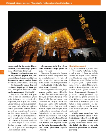 Bayramı‘nın birinci geceleri, Berat adet yemek, teke riayet etmek, sün- lül Pa zar te si günü, Medine’nin Ku- Aşûre günü yapılması iyi olan Dağı kadar sevaba kavuşur)buyu- (Şir’a)