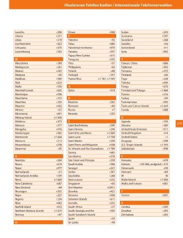 Lesotho +266 Oman +968 Sudan +249