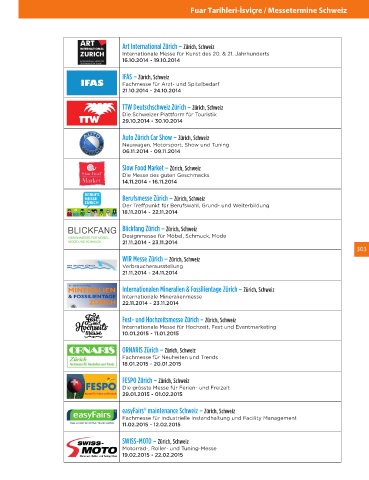 Fuar Tarihleri-İsviçre / Messetermine Schweiz