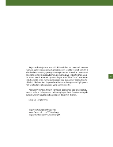 da adresi kayıtlı internet sayfamızda yer alan “Bize Yazın” anahtarını 17