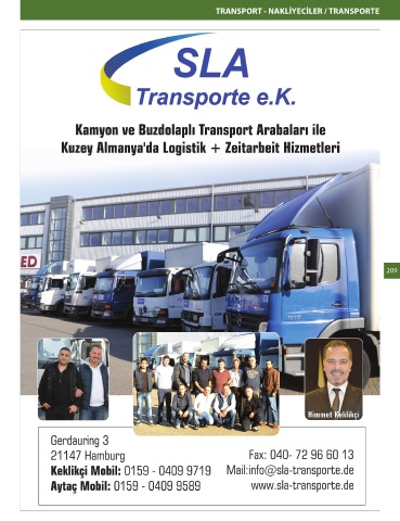 TRANSPORT - NAKLİYECİLER / TRANSPORTE 209 Post Bizim Rehber Hamburg Seite 209 11.05.2015 17:18:31