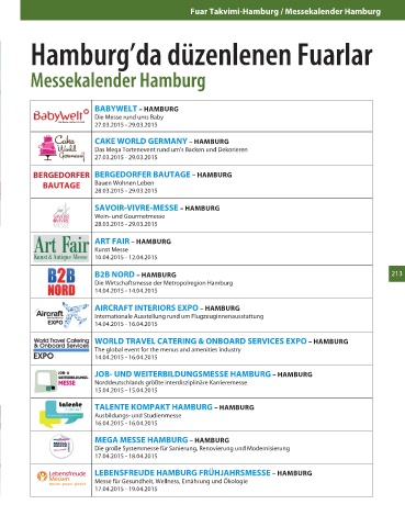 Fuar Takvimi-Hamburg / Messekalender Hamburg