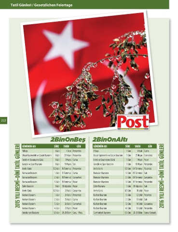 2015 Yılı Resmî–Dini TaTil GünleRi
