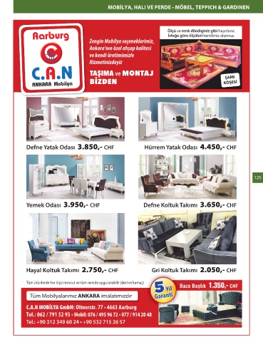C.A.N MOBİLYA GmbH: Oltnerstr. 77 • 4663 Aarburg