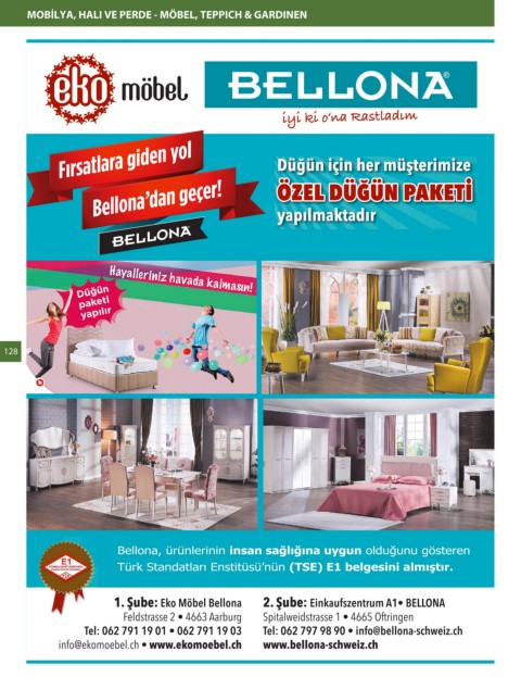 1. Şube: Eko Möbel Bellona 2. Şube: Einkaufszentrum A1• BELLONA