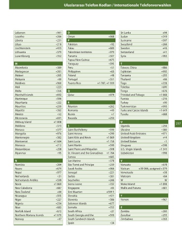 Namibia +264 São Tomé and Príncipe +239 Vanuatu +678