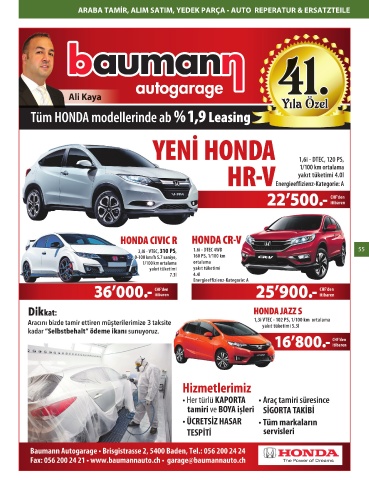ARABA TAMİR, ALIM SATIM, YEDEK PARÇA - AUTO REPERATUR & ERSATZTEILE 55 Post Bizim Rehber Isvicre Seite 55 21.09.2015 21:16:22