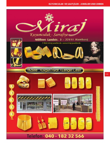 KUYUMCULAR VE SAATÇİLER - JUWELIER UND UHREN E-Mail: miraj-juwelier.de • www.miraj-juwelier.de 123 Telefon: 040 - 182 32 566 Post Bizim Rehber Hamburg Seite 123 21.06.2017 14:15:30
