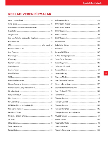 KFC ............................................................................ arka kapak içi Reisebüro Baltacı .................................................................... 161
