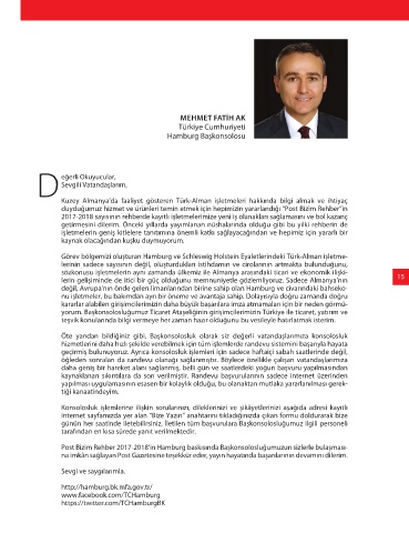 Post Bizim Rehber 2017-2018‘in Hamburg baskısında Başkonsolosluğumuzun sizlerle bulaşması-