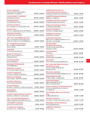 Berufsorientierungsmesse 19.09.2017 - 20.09.2017 Die Wirtschaftsmesse der Metropolregion Hamburg 02.11.2017 - 02.11.2017 191