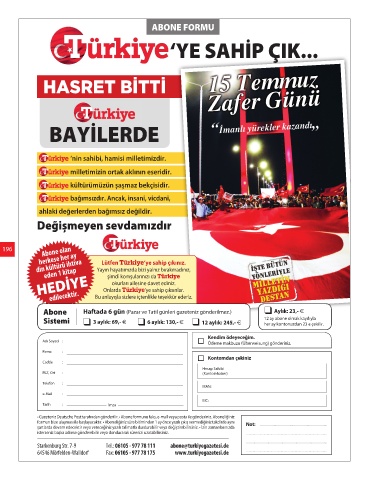Abone Haftada 6 gün (Pazar ve Tatil günleri gazeteniz gönderilmez.) ❑ Aylık: 23,- €