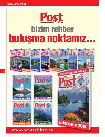TEXTIL-GİYİM-MODE bizim rehber buluşma noktamız... 138 www.postrehber.eu Post Bizim Rehber Isvicre Seite 138 23.04.2018 13:11:33