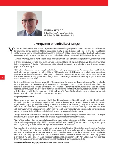 ri ile hasbihal ederdik. Bugün İsviçre’de çeşitli iş kollarında 100’lerce Türk asıllı vatandaşımızın iş yerleri mevcut,