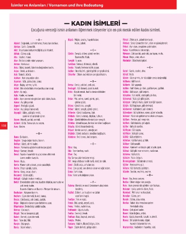 158 Azra : Bakire. Dilsafa : Gönlü ferah kedersiz. Gülfer : Gül gibi parlak.