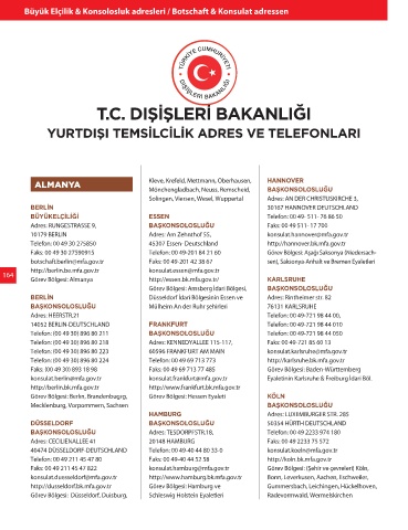 Telefon: (00 49 30) 896 80 211 BAŞKONSOLOSLUĞU Telefon: 00 49-721 98 44 050