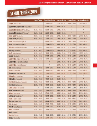 Graubünden / Chur Volksschule* * * 24.06. - 11.08. 05.10. - 20.10. 21.12. - 05.01. 177