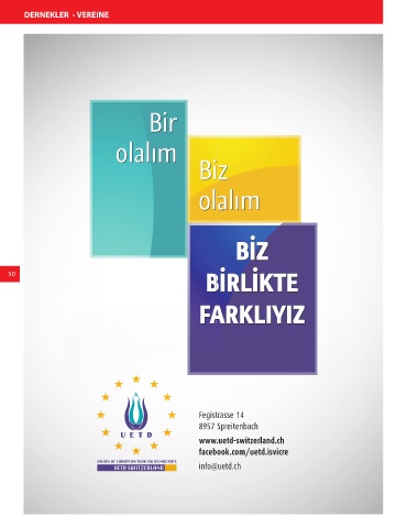 DERNEKLER - VEREINE 50 Fegistrasse 14 8957 Spreitenbach www.uetd-switzerland.ch facebook.com/uetd.isvicre info@uetd.ch Post Bizim Rehber Isvicre Seite 50 23.04.2018 12:53:24