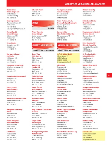 Limmatstrasse 119 MİMAR VE MÜHENDİSLER MOBİLYA, HALI VE PERDE Hüseyin Karagülle