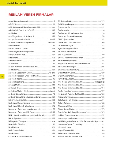 Akkaya Autoservice GmbH .............................................. 46-47 DEVK - Şeref Arslan ................................................................. 192
