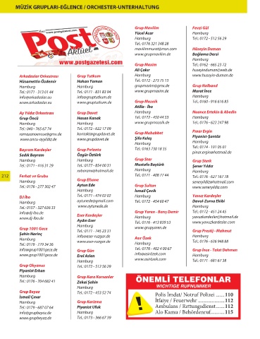 212 Ferhat ve Grubu Tel.: 0171 - 408 77 44 Tel.: 0176 - 627 167 78