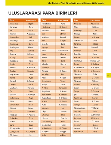 Ülke Para Birimi Ülke Para Birimi Ülke Para Birimi