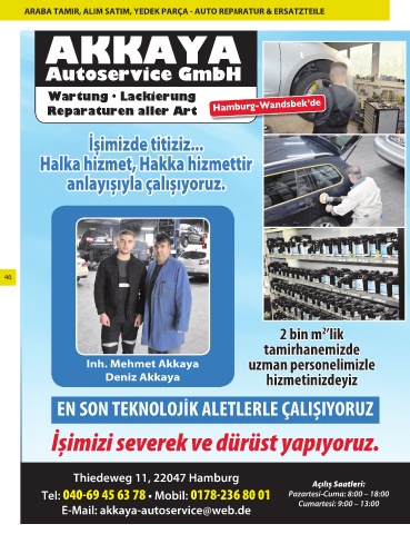 E-Mail: akkaya-autoservice@web.de Cumartesi: 9:00 – 13:00