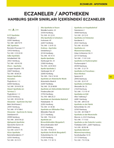 HAMBURG ŞEHİR SINIRLARI İÇERİSİNDEKİ ECZANELER